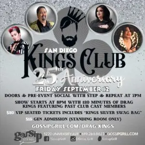 Join us for KINGS CLUB Drag King show, the 2nd Friday of every month at Gossip Grill!