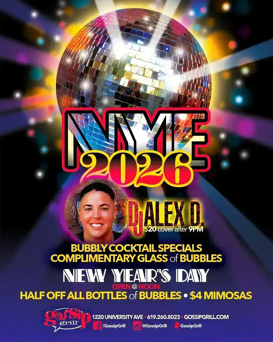 DJ Alex D! $20 Cover after 9pm Half off all bottles of bubbles! $4 mimosas